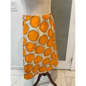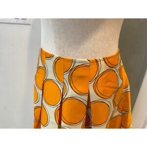 Lane Bryant The Modernist Circle Print Pleated Skirt Orange Cream Sz 20 Radiate vibrant energy in this eye-catching Lane Bryant skirt. The bold orange circles scattered across a cream background create a playful yet sophisticated statement. Expertly tailored pleats cascade down, offering beautiful movement and a flattering silhouette. This skirt is perfect for adding a pop of color to your wardrobe, ideal for a brunch, a date or a stylish evening out.