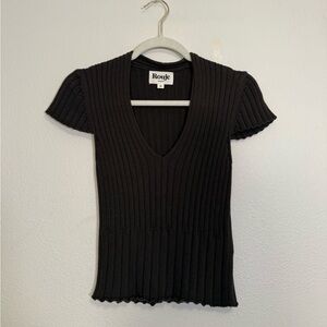 Rouje Paris Gray ribbed cap sleeve Sweater tee top Women’s Sz 38/6