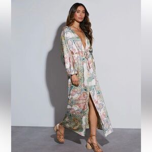 VICI Paisley Print Deep V Long Sleeve Silky Boho Maxi Dress