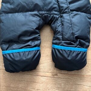 Fold over mitts and boots detail. Zipper entry. Fleece lined hood and upper body interior.