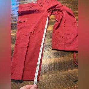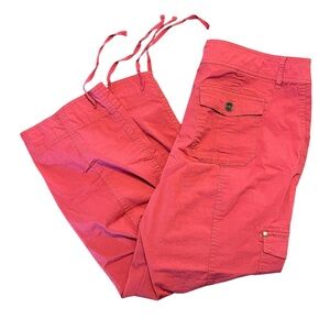 Bright coral colored cargo Capri pants.