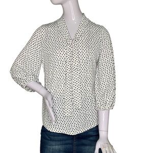 Adrianna Papell Top 3/4 Sleeve Bow Tie White Base Black Dipsy Floral Print Sz S