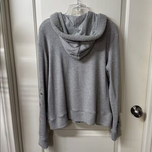 Cute Johnny Was waffle knit hooded sweater with metallic threads running through it. It has great embroidery on the front and sleeves. Zips up with Kanga pockets. It measures approximately 24 inches pit to pit and 26 inches in length.