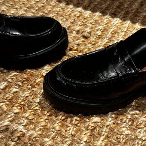 Reformation Agathea black leather lugg sole loafers - size 10