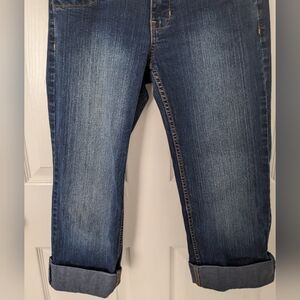 Stylish ankle-length jeans. Features rolled cuffs and classic design. Perfect for casual wear.