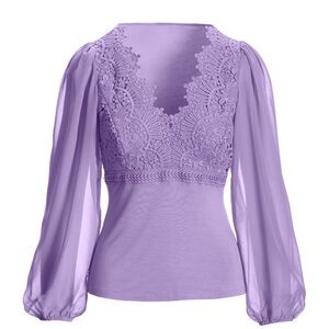 Boston Proper Scallop Lace Long Sleeve Top Purple