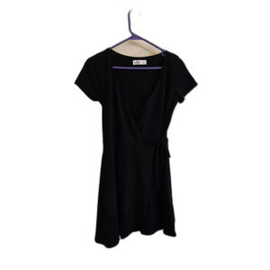 The Hollister Black Tie Dress in black with floral pattern is a stylish and versatile option for women. With short sleeves, a V-neckline, and a wrap dress style, it is perfect for various occasions such as travel, parties, or casual wear. This short dress in size S is easy to care for with machine washable instructions. The dress features a flattering side tie closure, making it ideal for the spring and summer seasons. Made in China, this Hollister dress combines comfort and fashion effortlessly.