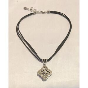 This is a Brighton Presage Pendant Necklace. It is a Reversible Silver Plated Pendant hanging on a triple Black Cord. Adjustable from 15"-16.5" long. It is a Retired piece and is in very good pre-owned condition. Please see pics for details.