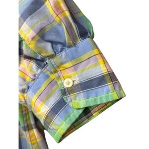 Ralph Lauren Girls Size 7 Plaid Ruffle Short Sleeve Button Down Cotton Dress