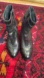 Elegant black leather boots with stylish buckle accents. Comfortable heel for all-day wear. Zip up.