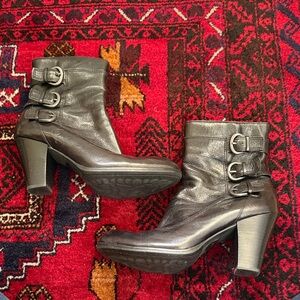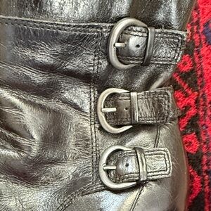 Born Black Zip With Buckles Accent Leather Heeled Boots Sz8