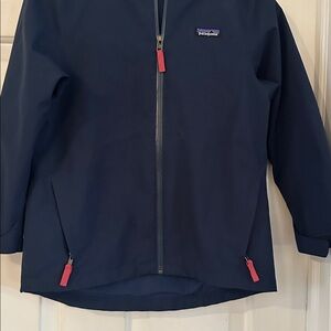 Kids Patagonia Dark Blue with Red Details Polyester Windbreaker/Rain Coat Size S