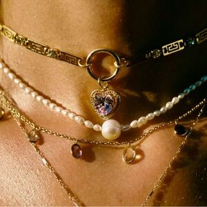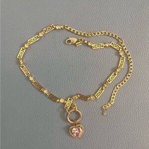 Chic gold necklace with a purple heart charm. Adds elegance to any look. See the last 2 pics. The circle near the heart is tarnished. It cannot be fixed, hence the lower price.