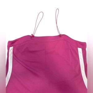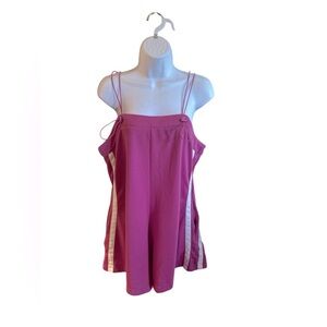 This Athletic Romper Features A Vibrant Pink Hue With Bold White Side Stripes, Made From Soft Stretchy Knit, With Adjustable Toggle Spaghetti Straps, Side Pockets, With A Relaxed Fit And A Fun Breezy Silhouette, Summer, Lounging, Festivals, Casual, Athletic Romper, Sporty, Romper, Comfy Chic, Y2K