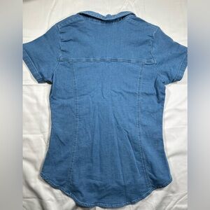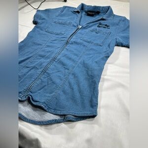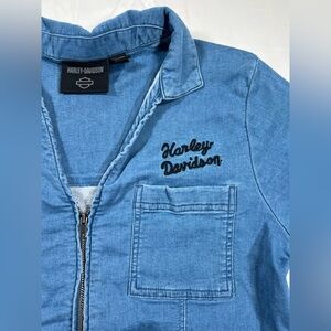 Women Harley Davidson zip up liberty stretch denim short sleeve light blue wash