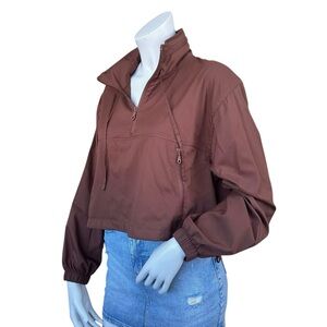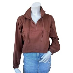 Girlfriend Collective Brown Huddle Cropped 1/4 Zip Windbreaker Jacket Size XS