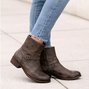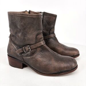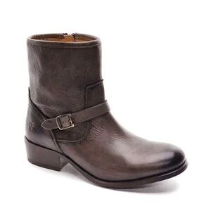 FRYE Lynn Strap Short Grey Leather Boot 9