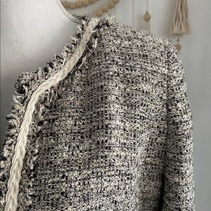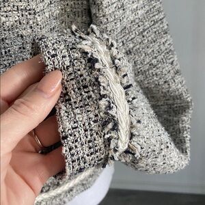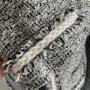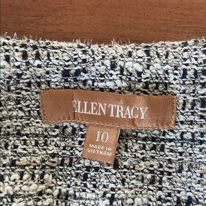 Ellen Tracy tweed blazer jacket sparkle black cream grey Chanel vibe size 10