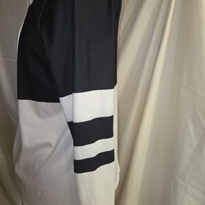 Chic long sleeve top in black and white. Features a front zipper. Perfect for any occasion. Comes from a smoke free home.