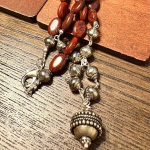 Jasper Brown Bead and Tibetan Silver Extra Long Necklace Handmade