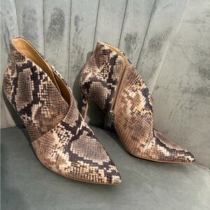 Step out in style with these chic snakeskin ankle boots. Perfect for adding a touch of elegance to any outfit. Gently worn only 2 times!