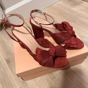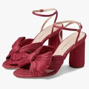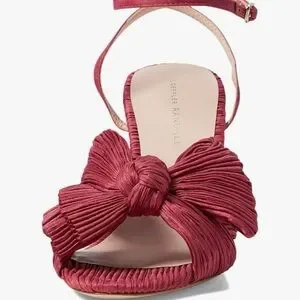 Loeffler Randall Camellia Pleated Bow Heel with Ankle Strap ,Size 8,burgundy.