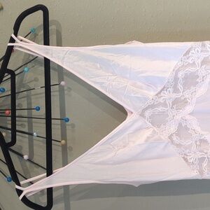 Vintage Maxi JC Penney Light Pink Night Gown Slip Dress Lace Nylon Made In USA