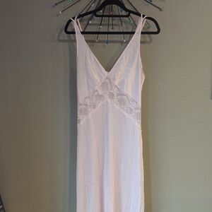 Vintage Maxi JCPenney Light Pink Gown Slip Dress Lace Nylon Y2K Fairy Semi Sheer