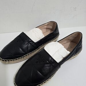 Prada Quilted Black Leather Espadrilles, (Size 38)