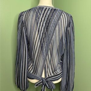Elegant Blue Striped V-Neck Blouse