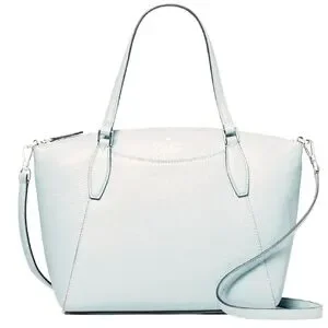 Mint green chic and versatile by Kate Spade. Features a sleek design with dual handles and a detachable and adjustable strap. The exterior features a slip pocket, and the interior features two slip pockets and a zippered pocket.