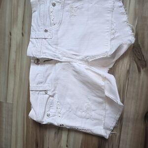 Chic white jean shorts with stylish embroidery. Perfect for casual wear.