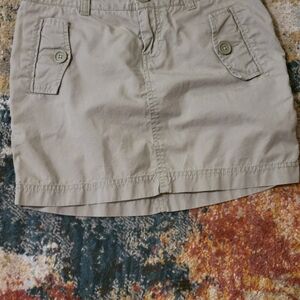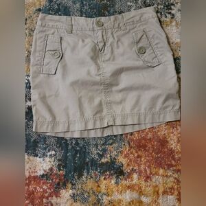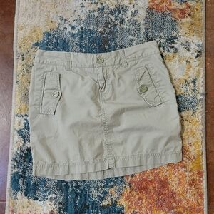 Stylish khaki mini skirt with button accents. Perfect for casual outings.