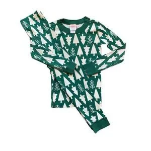 Green and white Christmas tree print cotton pajamas