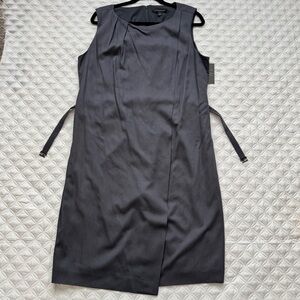 NWT Classiques Entier Belted Waist Sleeveless Charcoal Gray Midi Dress Size 16