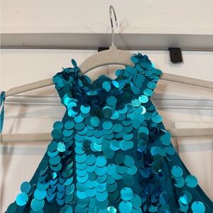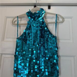 Vibrant turquoise top with shimmering sequins. Ideal for festive occasions.
