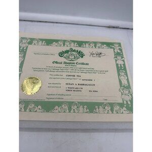 Blond ponytails and blue eyes. Dressed in original CBK sweatsuit outfit. Includes adoption certificate and a few other pieces of paperwork. Signed on behind and marked on back of head.