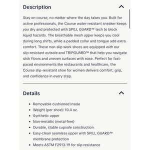 Keywords: Construction law enforcement Police Fire EMS NURSE Military Security Guard Chef workwear, non slip, restaurant, healthcare, chef, nurse, industrial, comfort, durable, water resistant, easy clean, sneakers, uniform