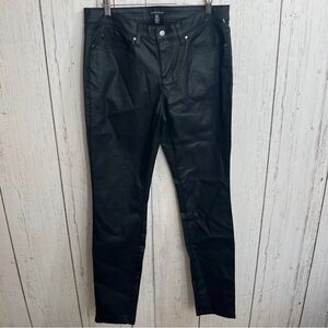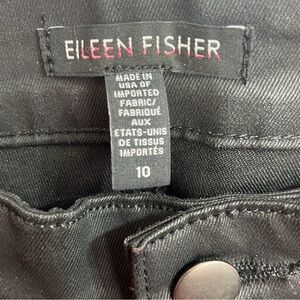 Eileen Fisher Black Waxed Faux Leather Organic Cotton Blend Pants Size 10