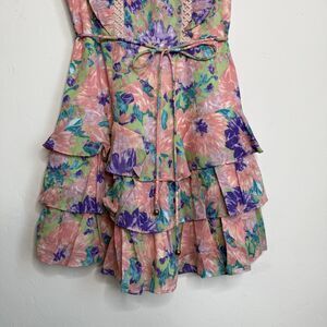 Indikah Angel Biba Womens XS Tiered Ruffle Open Back Colorful Floral Mini Dress