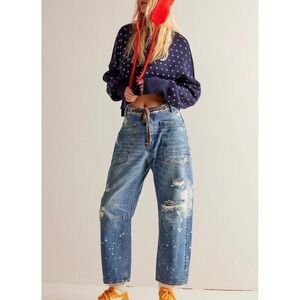 We the Free Calypso 👀 Moxie Distressed Barrel Jeans Size 31 RARE Street Y2k