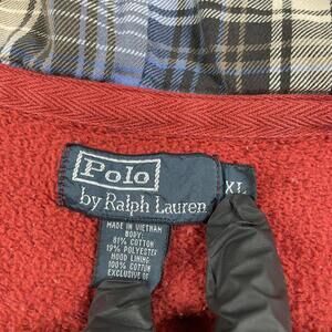 Polo Ralph Lauren Full Zip Hoodie Extra Large Red plaid lined hood vintage 90s