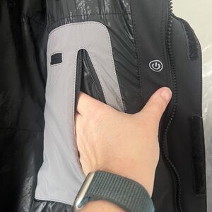 Sleek black design with durable fabric. Features multiple zippered pockets. Ideal for outdoor activities.