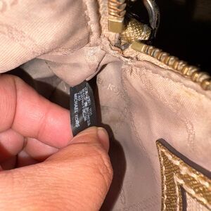 Michael Kors Gold Signature Monogram Pinhole Laser Cut Crossbody Braided Chain