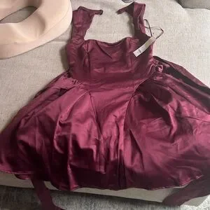 Chic formal dress in a deep wine hue. Perfect for special occasions. Flattering fit and elegant style.