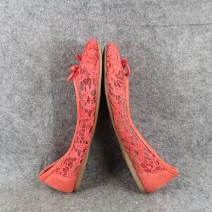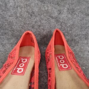 Used Pop Shoes Womens 7.5 Ballet Flats Slip On Lace Round Toe Bow Memory Foam Comfort