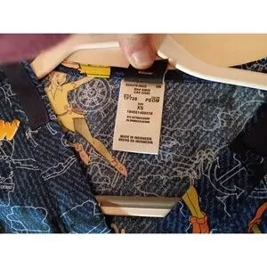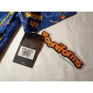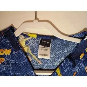 The Peter Pan Cherokee Scrubs Disney Tooniforms Unisex V Neck Top TF728 PEOM XS is a colorful and fun top designed for medical professionals. Made from a comfortable cotton blend material, this patterned top features a V-neck design and is suitable for both men and women. The multi-color design brings a playful touch to the medical setting, making it a unique and enjoyable choice for those in need of a scrub top.