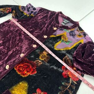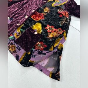 Ali Miles Purple Velvet Burnout Boho Lagenlook Floral Button Tunic Top Large