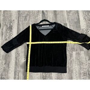 Keywords: Michael Stars top, black velvet top, velvet knit blouse, v neck velvet top, long sleeve velvet shirt, made in USA top, soft stretch velvet, womens medium top, luxe casual top, minimalist velvet