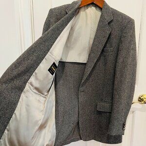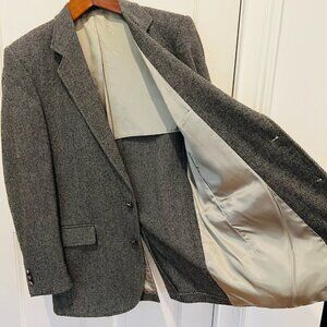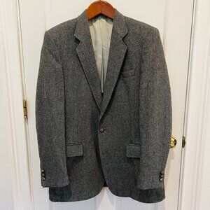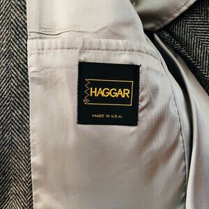 Vintage Hagger Gray Harringbone Sport Coat Leather Button Patch Pocket 42 L